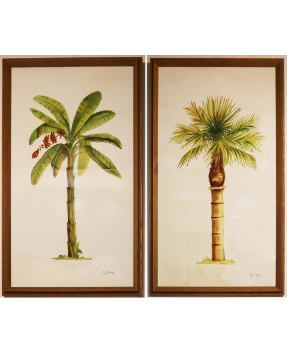 Coppia di stampe raffiguranti palme in basso a destra firma G. Ciano stampate, con cornici