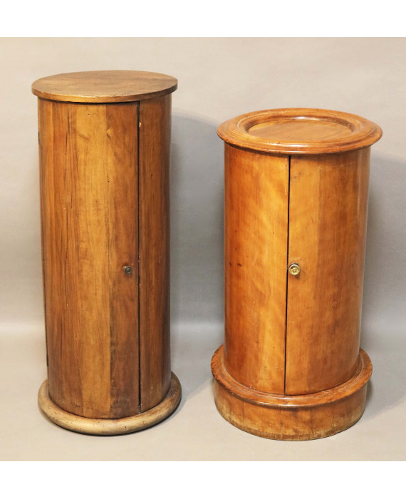 Lotto di due comodini a cilindro ad uno sportello, uno in legno di noce ed uno in legno di ciliegio. Italia, sec. XIX. Alt. cm83/73 (lievi difetti)