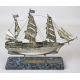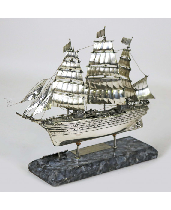 Modellino in argento 925 del veliero Amerigo Vespucci, su base in marmo. Peso gr. 750 (difetti)