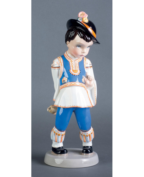 Statuina in ceramica raffigurante Rumeno, modellata a colaggio e decorata in policromia, marcata sul fondo C.I.A. Manna Torino. Alt. cm41