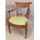 Coppia di poltrone in legno di ciliegio, schienale a giorno, gambe anteriori piramidali, seduta in paglia di Vienna. Italia, inizi sec. XIX (restauri e rotture alla paglia di Vienna)