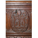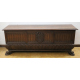 Cassapanca in legno di noce, fronte e laterali scanalate, stemma cardinalizio centrale intagliato, zampe anteriori ferine. Italia, sec. XVI. cm60x155x49