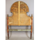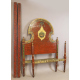 Letto singolo in legno laccato, dorato e dipinto con serti floreali e tondo centrale raffigurante castello, completo di testata, pediera e sponde laterali. Marche, sec. XVIII (difetti)