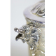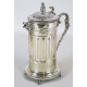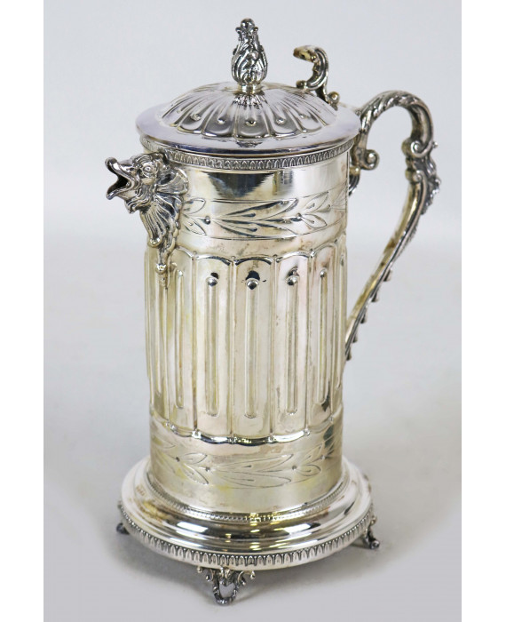 Tankard con coperchio in argento 800 lavorato con mascheroni e serti vegetali, interno in vermeille. Alt. cm25. Peso gr. 810