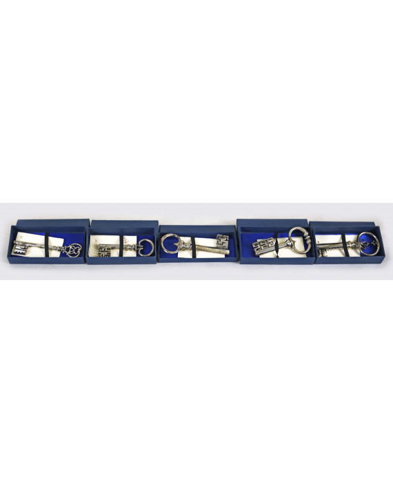 Lotto di cinque riproduzioni di antiche chiavi in argento 800 e 925. Peso tot. gr. 620 (una assente di bolli)