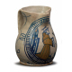 Boccale trilobato in maiolica smaltata e dipinta con San Francesco orante entro medaglione. Manifattura viterbese della fine del sec. XV. Oggetto presentato alla mostra "Forme Simboli e Colori" a Palazzo Brugiotti di Viterbo, Ed. Faul. Allegata scheda descrittiva del Prof. Mario Romagnoli ceramologo. Alt. cm19 (restauri)