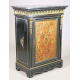 Credenza boulle in legno ebanizzato, sportello intarsiato in metallo a volute vegetali, applicazioni in bronzo, piano in marmo. Francia, periodo Napoleone III. cm104x78x44 (difetti e mancanze)