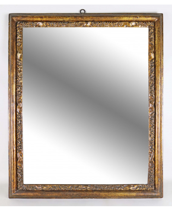 Specchiera in legno dorato ed intagliato a volute. Italia, sec. XVII. cm86x78