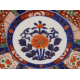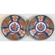 Coppia di piatti Imari in porcellana dipinta in policromia con fiori, e serti vegetali, bordi a ondine. Giappone, fine sec. XIX. Diam. cm35