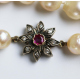Collana di perle di mare barocche di mm 8-9, con chiusura in oro 18Kt ed argento, con rosette di diamanti e rubino di piaccole dimensioni. Allegata dichiarazione di autenticità di Federico Perinelli Perito Preziosi e Gems Expert