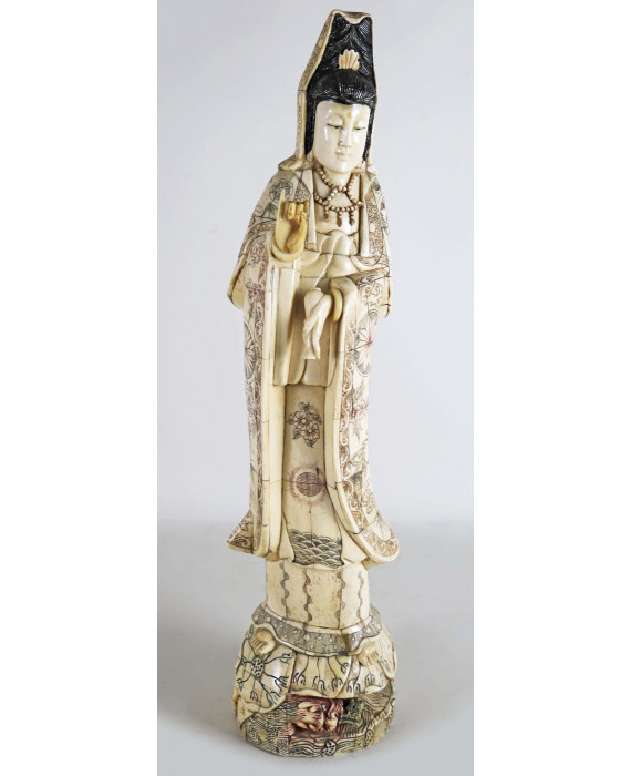 Geisha lastronata in tasselli di osso inciso. Alt. cm60