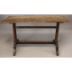 Antico tavolo a capra con piano in legno di noce modanato, due sostegni a colonna raccordati da traversa. cm77x136x47 (difetti)