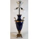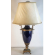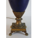 Lampada da tavolo a tre luci con corpo in porcellana in blu di Sevres, anse e base in bronzo dorato. Francia, inizi sec. XX. Alt. cm63