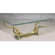 Dikran Khoubesserian (1913-1991). Antilopi. Particolare tavolinetto da salotto con base realizzata con due teste di antilopi in bronzo dorato, firmato e marcato Fondica-France in basso, piano in vetro. cm40x109x49 (scheggiatura al piano)