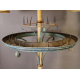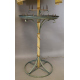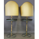 Coppia di lampade-portaceri a tre luci da terra in metallo laccato, dipinto e dorato, base circolare, completi di paralumi. Alt. cm160 (lievi difetti)