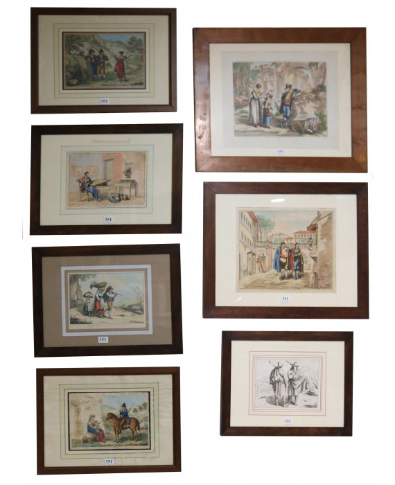 Micheletti-Costumi del Regno di Napoli, 1809; Ciociari, Roma 1819; Famiglia di Ciociari partendo dal loro paese, Roma 1815; Riposo dell'autore, Roma 1815; Uno sbirro ed una Ciociara, Roma 1809; Li pifferai in Roma per la Novena del Santo Natale, Roma 1821; Carrettiere di vino e la sua famiglia - costumi romani, Roma 1821, con cornici. cm22x31,5/20x27,5/23x31/20x29/21,5x31/34x43/40x50