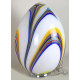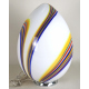 Lampada ovoidale in vetro lattimo con striature policrome e base in metallo cromato. Alt. cm44