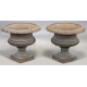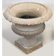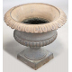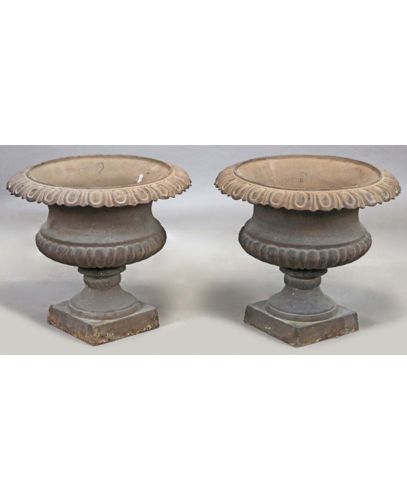 Coppia di vasi in ghisa con fasce baccellate e base quadrata. Alt. cm46; Diam. cm50