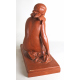 Gruppo in terracotta dipinta nei toni del rosso raffigurante nudo di donna inginocchiato con uccellino e velo. Manifattura tedesca del periodo Decò. cm40x43x20 (lievi abrasioni)