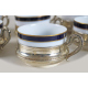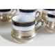 Set di sette tazze da tè e sei tazzine da caffè in porcellana di Limoges, con basi in argento 800. Peso dell'argento gr. 475