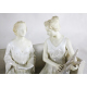 Rudolf Podany (1876-1963). Gruppo in porcellana bianca raffigurante donna con spartito e suonatrice di lira, sedute su divanetto, firmato alla base. cm31x33x23 (piccoli restauri)