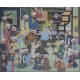 Dipinto su tessuto raffigurante scena d'interno con personaggi. Arte orientale del sec. XX, con cornice. cm89x56