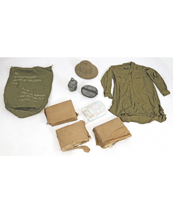 Lotto di una divisa da prigioniero di guerra appartenuta ad un ufficiale italiano detenuto al campo punitivo di Hereford in Texas. Il lotto comprende un camisaccio con iscrizioni sul retro, una sacca con trascrizione dei dati personali, un caschetto coloniale, una gavetta ed una borraccia. È compreso la corrispondenza di prigionia e tre blocchi di giornali forniti ai prigionieri, con parti mancanti per censura