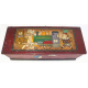 Cassapanca della fine del sec. XIX in legno laccato rosso e dipinto con giocattoli d'epoca. cm37x110x43