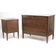 Lotto di un comò a tre cassetti in legno di noce con filettature in legni chiari ed un mobiletto a due cassetti in legno di pioppo della fine del sec. XVIII. cm93x109x60/76x55x45 (restauro al comò)