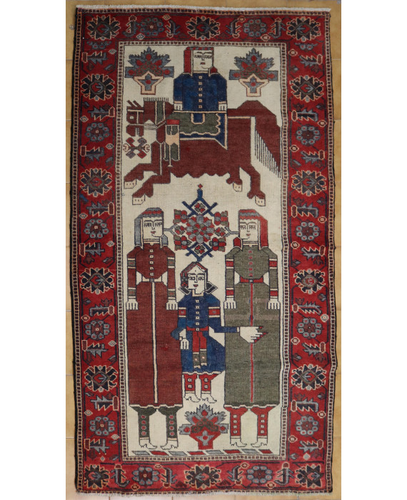 Tappeto Bachtiari con decoro geometrico. cm229x123