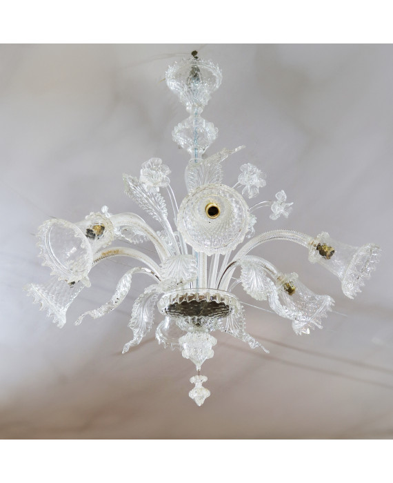 Lampadario a sei luci in vetro trasparente di Murano (mancante di due elementi)