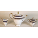 Servizio da tè in porcellana a fondo bianco, decorata in blu e oro con greche e serti vegetali, marcato sul fondo Sevres, composto da teiera, lattiera, zuccheriera e 12 tazze con piattino