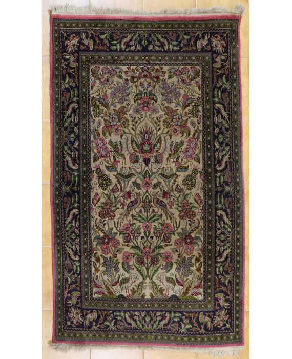 Tappeto Qum decorato a motivi floreali e faunistici. cm156x107