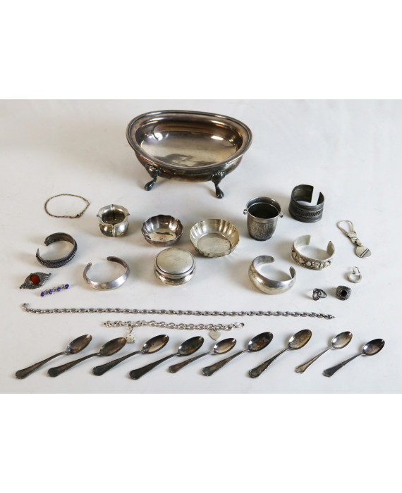 Lotto di vari oggetti in argento 800, tra cui alcuni bracciali. Peso tot. gr. 910