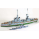 Lotto di due modellini di navi da guerra, tra cui una raffigurante la Giulio Cesare della Regia Marina Italiana, in legno dipinto. Lungh. cm96/42 (lievi difetti)