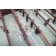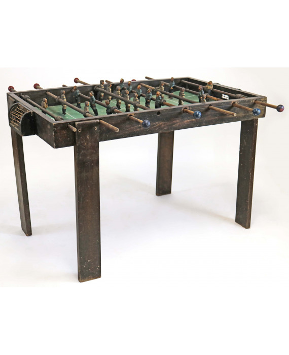 Raro calcio balilla con giocatori delle squadre di Juventus ed Inter, in legno intagliato e dipinto. Etichetta "Giuoco del calcio in miniatura - brevettato - E. Sovera - Mogliano veneto". Italia, anni '30. cm80x119x72 (difetti e restauri)