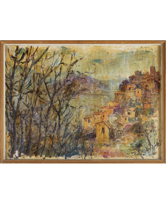 Veduta di borgo, 1965, con cornice
