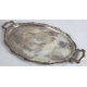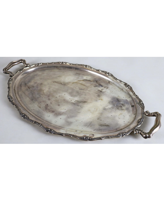 Vassoio biansato in argento 800 con bordo mistilineo. cm63x37. Peso gr. 1900