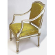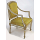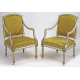 Coppia di poltroncine in legno laccato e dorato, con seduta e spalliera rivestite in stoffa. Italia, periodo Liberty. (lievi difetti)
