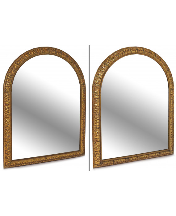 Coppia di specchiere in legno dorato ed intagliato con serti vegetali. cm129x98
