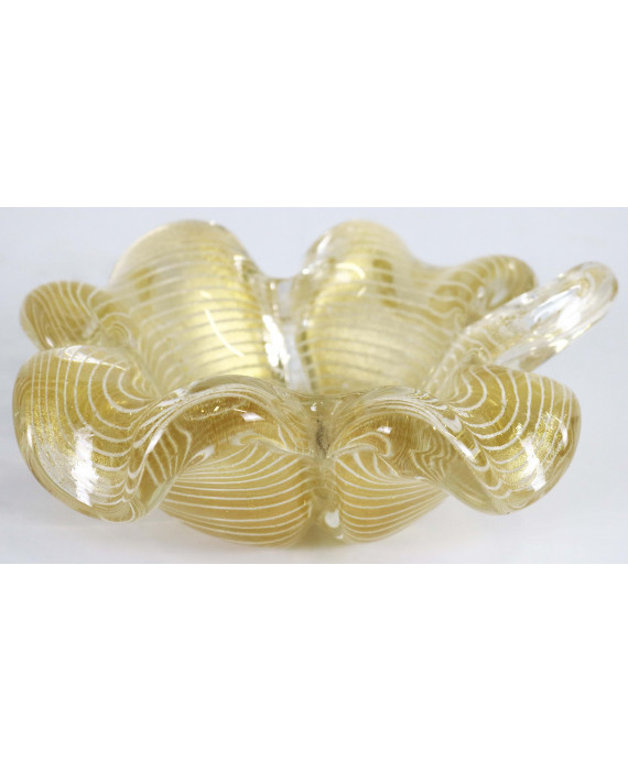 Posacenere in vetro dorato di Murano. Manifattura Barovier & Toso della serie zebrati