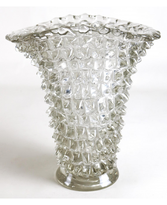Vaso in vetro trasparente rostrato di Murano. Manifattura Barovier & Toso, anni '40. Alt. cm34 (piccole scheggiature)