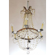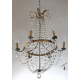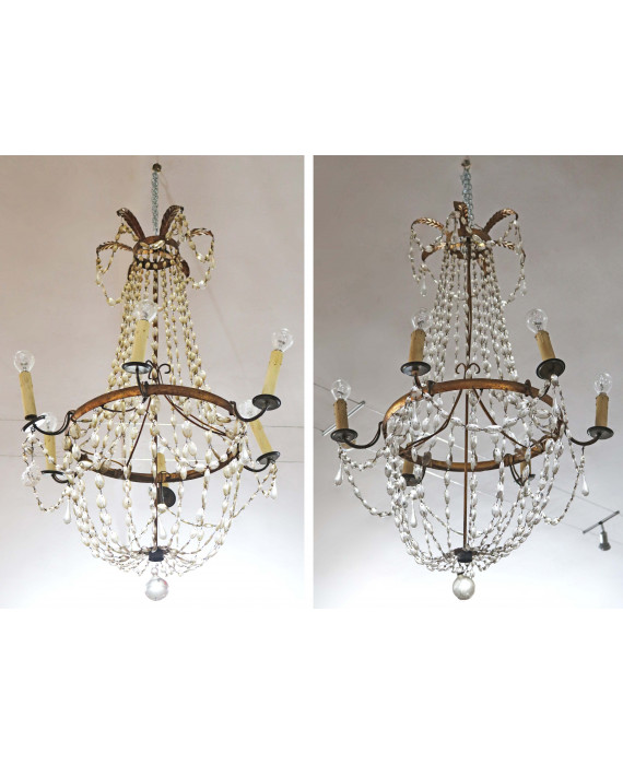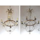 Coppia di lampadari a sei luci con struttura in metallo dorato e pendenti in vetro (lievi difetti)