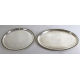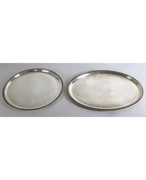 Lotto di un vassoio ovale ed uno tondo, in argento 800, con decoro a palmette. Peso tot. gr. 1930 (ammaccatura)
