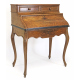 Mobile scrittoio impiallacciato in legno di noce, alzata a due cassetti, sportello a ribalta con due cassettini interni, un cassetto inferiore, quattro gambe a voluta. Francia, fine sec. XIX. cm103x80x51