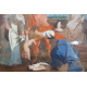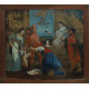 Antico dipinto sotto vetro raffigurante Il giudizio di Salomone, con cornice. (gravi cadute di colore e rottura al vetro)