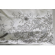 Elegante tovaglia in tessuto a fondo avorio ricamato e traforato a fiori, completa di 12 tovaglioli. cm255x170