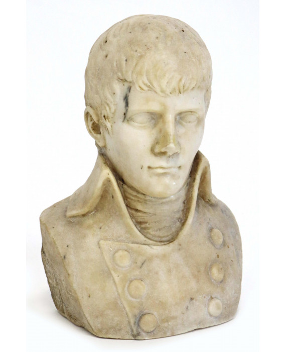Busto maschile in marmo bianco, in abiti napoleonici. Alt. cm22 (lievi scheggiature)