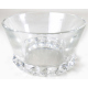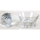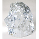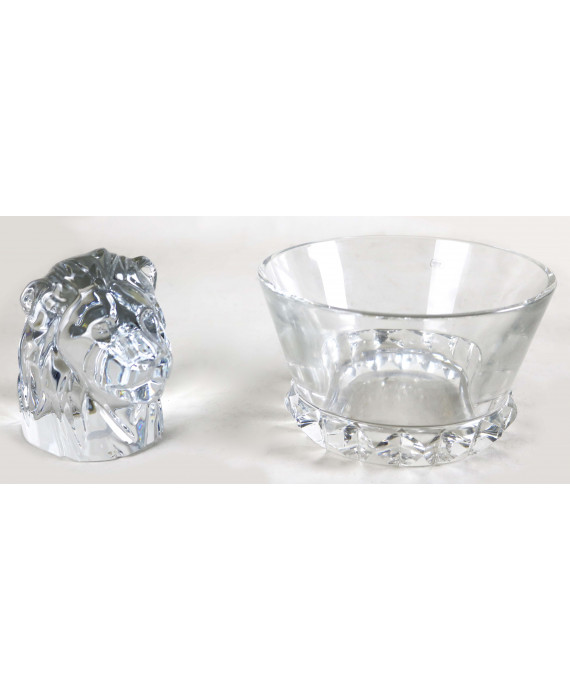 Lotto di due oggetti in cristallo: una testa di leone marcata alla base Baccarat ed un centrotavola a corpo liscio con base a motivo geometrico. Alt. cm13/alt. cm11; Diam. cm20