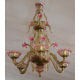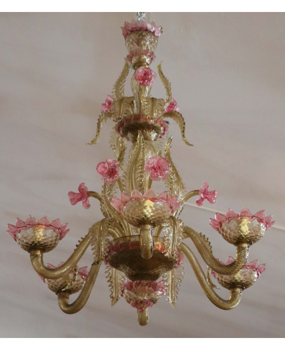 Lampadario a sei luci in vetro di Murano ambra e rosa